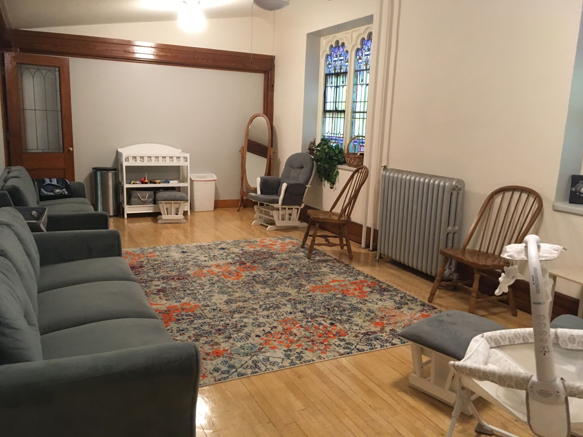 A comfortable space for nursing moms, quick diaper changes, or restless toddlers to wait with their parents.